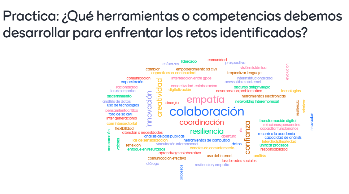 Otros aspectos mencionados fueron la corresponsabilidad, sobre todo de las personas para que tomen las medidas de salud adecuadas y eviten que haya rebrotes, profesionalizar el conocimiento de quienes ya tienen alguna preparación, así como aprovechar la mayor movilización ciudadana para encontrar nuevas y mejores soluciones.