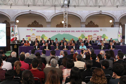 El Gobierno del Estado de Nuevo León presentó hoy la Estrategia para la Calidad del Aire de Nuevo León, en la que a través de 15 líneas de acción convoca a ciudadanos, organizaciones civiles, empresas y diferentes autoridades a participar para resolver la contaminación ambiental.