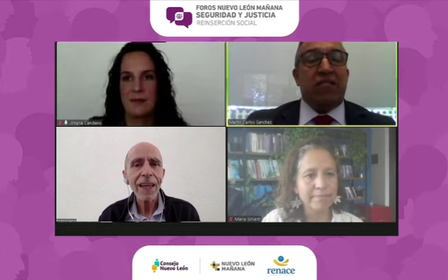 También, Nínive Cruz Tapia, de USAID México; Laura Cora Bogani, investigadora del Centro de Estudios de Justicia de las Américas; Moisés Ramírez Martínez, subdirector de Reinserción Social del Cereso 1 de Nuevo León; y Edgar Márquez Alfaro, director de la Comisión Ejecutiva para la Reforma del Sistema de Justicia Penal del Estado.